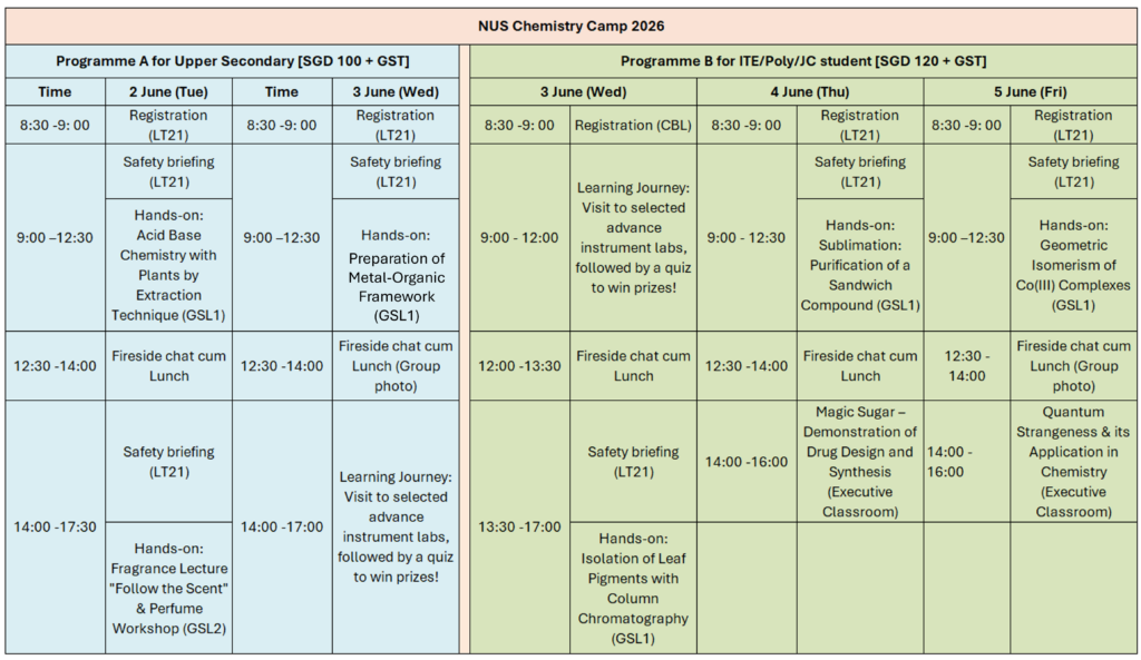 - Programme A: SGD 100.00 + GST per student (non refundable)
